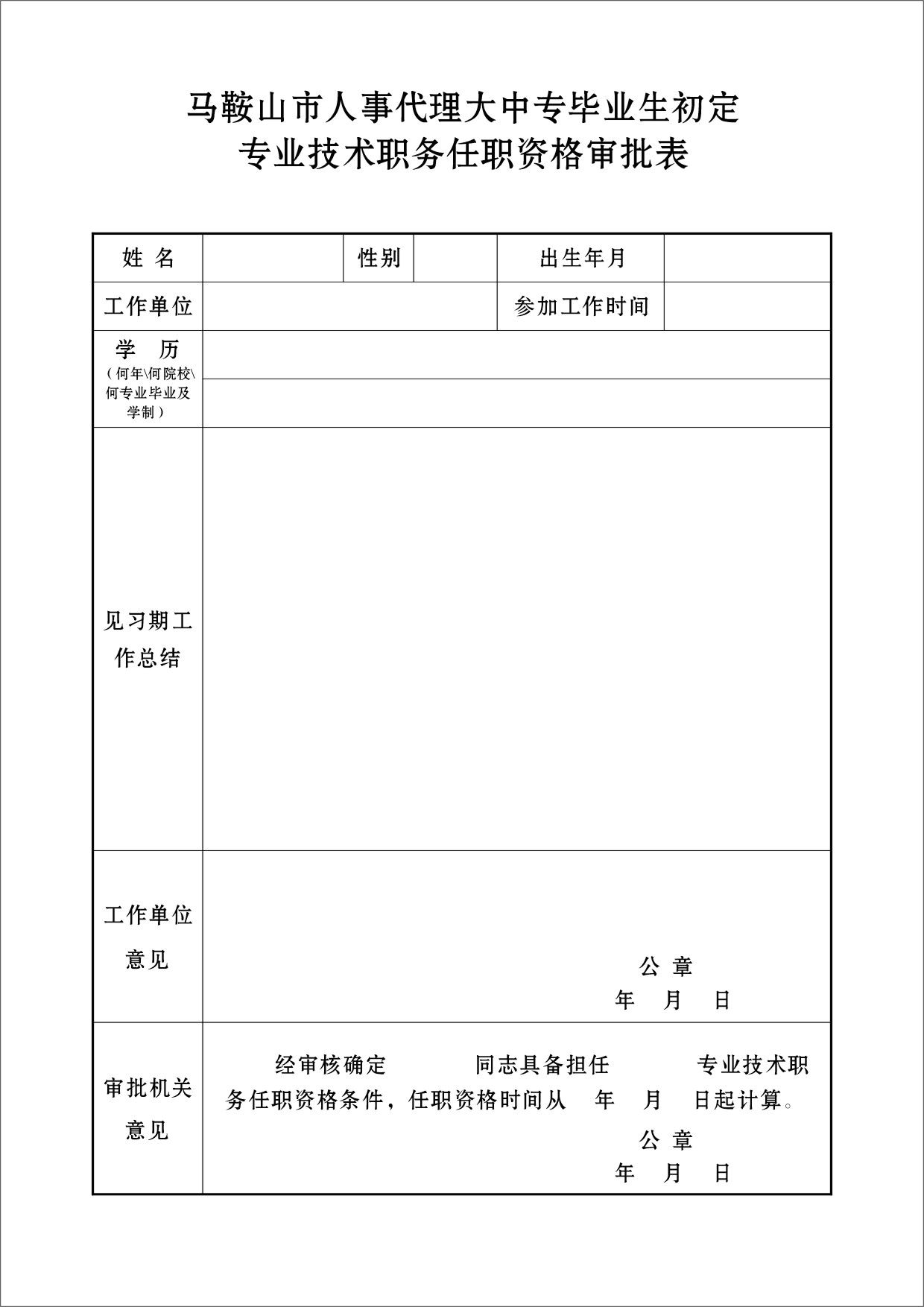 附件2:馬鞍山市人事代理大中專畢業(yè)生初定專業(yè)技術職務任職資格審批表